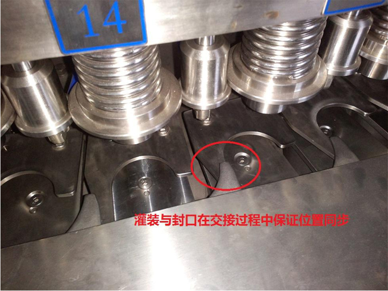 2、在運行過程中始終保持工位一一對應,實現灌裝機和封口機位置同步,保證灌裝與封口環節的平滑交接,不影響罐內液體容量偏差和保證罐體外形完好無損