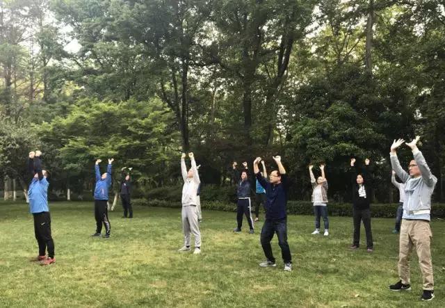 為更好地準備運動會,使大家能夠在工作之余加強鍛煉,保持身體健康,特邀上海敬衡堂的老師現場領操,組織華佗五禽戲教學。