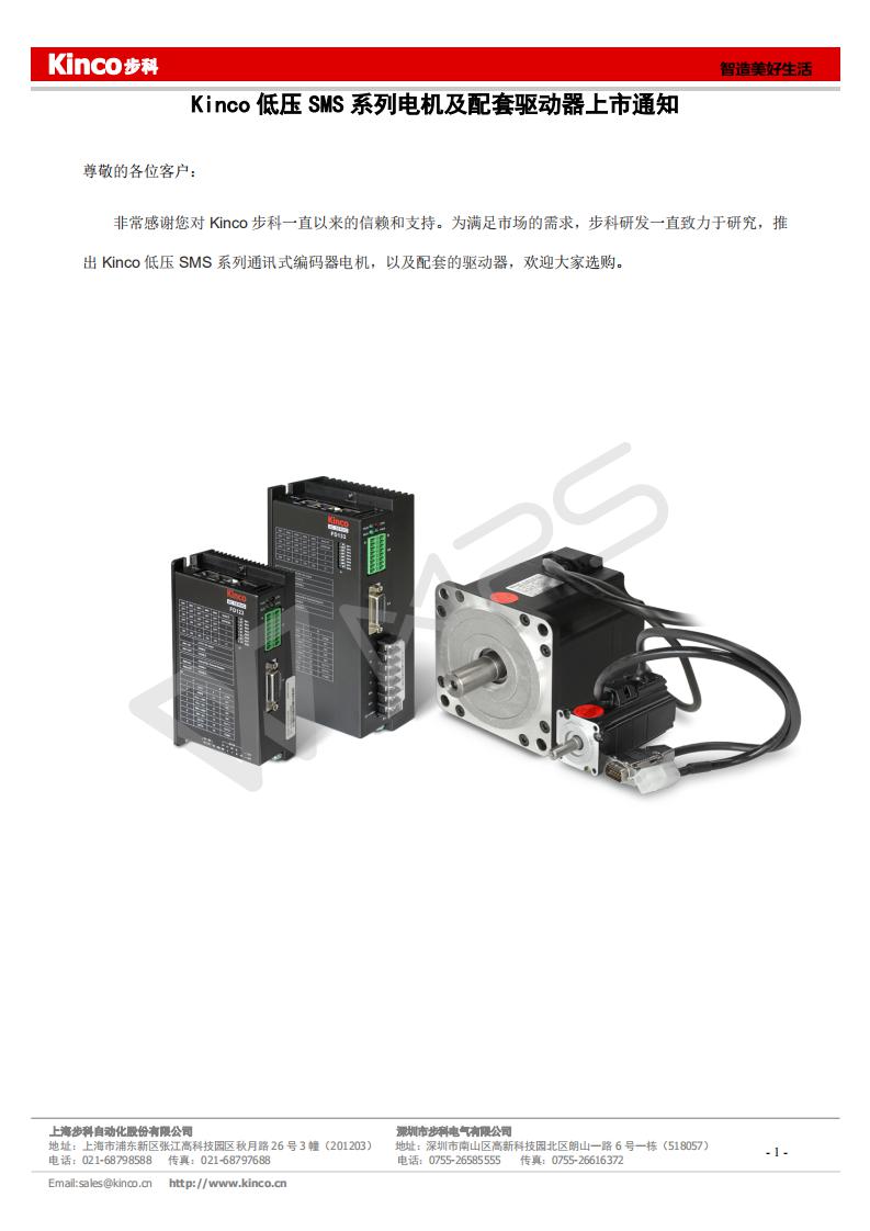 Kinco 低壓 SMS 系列電機及配套驅動器上市通知