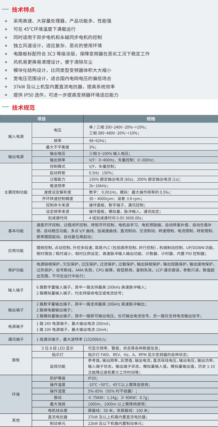 37kW及以上內置直流電抗器,提高系統效率