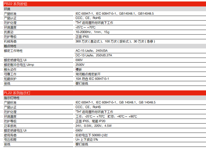 ● 霍尼韋爾PB22/PL22按鈕和指示燈產品采用進口塑料材質,適用范圍更廣,代表全球主流應用,特別是需要抗振動、耐腐蝕以及雙重絕緣的應用場合。