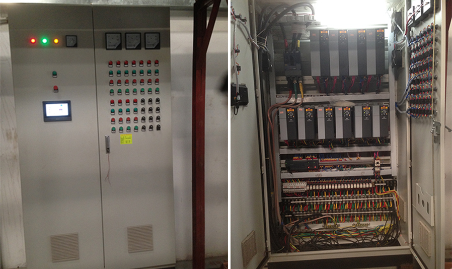 該系統(tǒng)設計之初,均沒有考慮冷卻泵、冷凍泵、循環(huán)泵采用變頻控制(如下表1),而是采用傳統(tǒng)的星三角啟動方式(舊電柜見下圖1),根據對系統(tǒng)運行工藝的觀察,泵總功率110.5KW,電能浪費嚴重,存在較大的節(jié)能空間。
