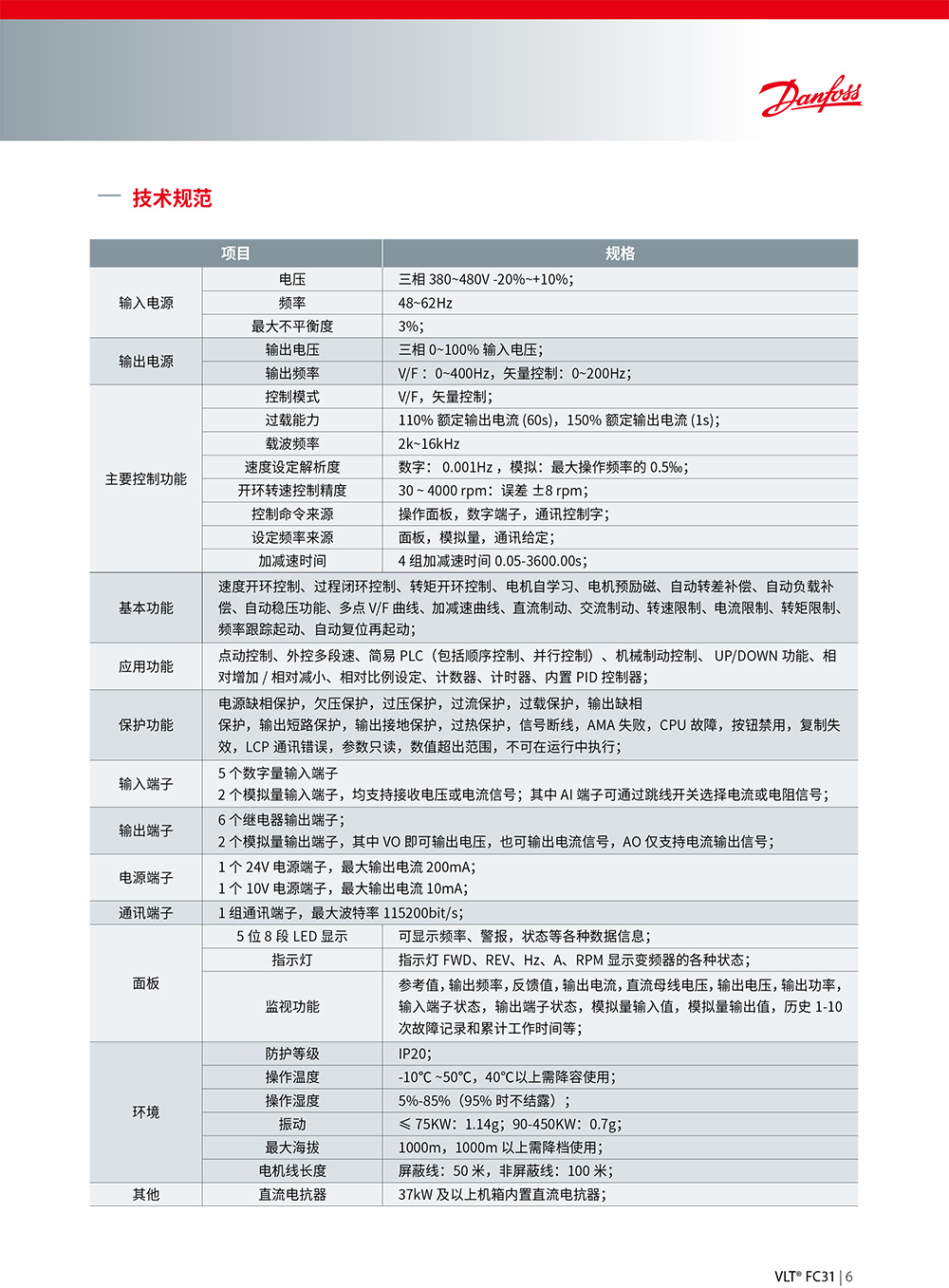 VLT? FC31 系列是丹佛斯結合實際工程應用需求研制的針對風機、水泵、暖通空調等低負載市場的工 程型產品,集成了風機、水泵應用相關工藝,可廣泛應用于供水、供熱、污水處理、HVAC 和項目改造 等領域。